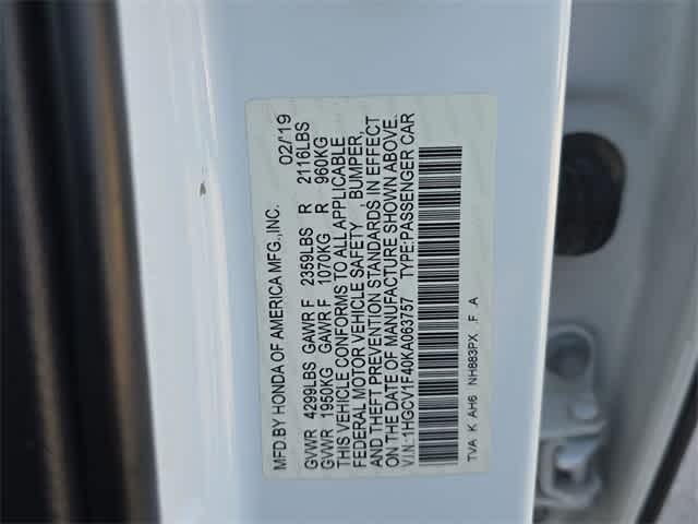 Certification Program Details: Purchase with Hill Country Honda Certified Confidence. All our pre-owned vehicles with 100,000 miles or more come with: Coverage Provided: ? Engine (Gasoline, Diesel, Turbocharged, Supercharged) ? Transmission (Automatic, Manual) ? Drivetrain (Front-Wheel Drive, Rear-Wheel Drive) ? Transfer Case (4x4 and All-Wheel Drive Vehicles) These components are covered from day one under our 3 Month / 3,000 Mile Limited Powertrain Warranty (whichever comes first), with a $100 deductible. Included Extra Benefits: ? Emergency Roadside Assistance including towing, flat tire service, fuel delivery, battery jump-starts, and lockout assistance ? Commercial Use Coverage Available (includes rideshare and delivery services like Uber, Lyft, and DoorDash) At Hill Country Honda, we dont just sell pre-owned vehicles; we stand behind them. Our certified coverage is designed to give you peace of mind from day one, so you can drive with confidence no matter the mileage. The Hill Country Honda Team<br><br>Accord EX, 4D Sedan, 1.5T I4 DOHC 16V Turbocharged VTEC, CVT, FWD, Platinum White Pearl, Black w/Cloth Seat Trim.<br>CARFAX One-Owner.<br>Certified. Platinum White Pearl 2019 Honda Accord EX FWD CVT 1.5T I4 DOHC 16V Turbocharged VTEC<br><br><br>This 2019 Honda Accord EX will not make it to the weekend!! CALL NOW to reserve your test drive!! (210) 457-5555 Please Visit www.HillCountryHonda.com for further details. Price(s) include(s) all costs to be paid by a consumer, except for licensing costs, registration fees, dealer adds and taxes. Dealer doc fee of $225.00 not included in price.
